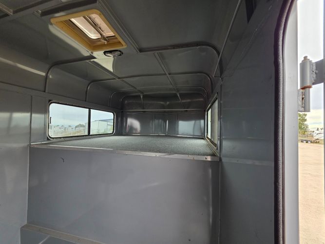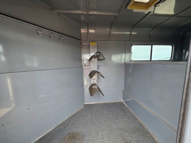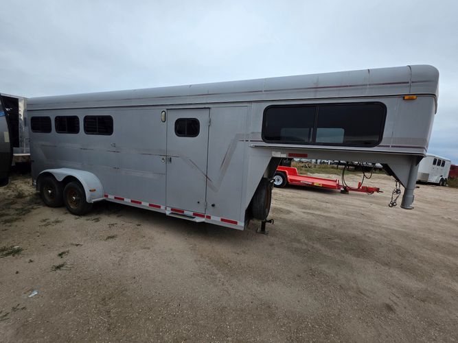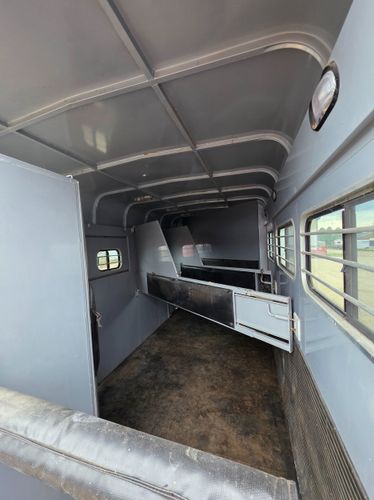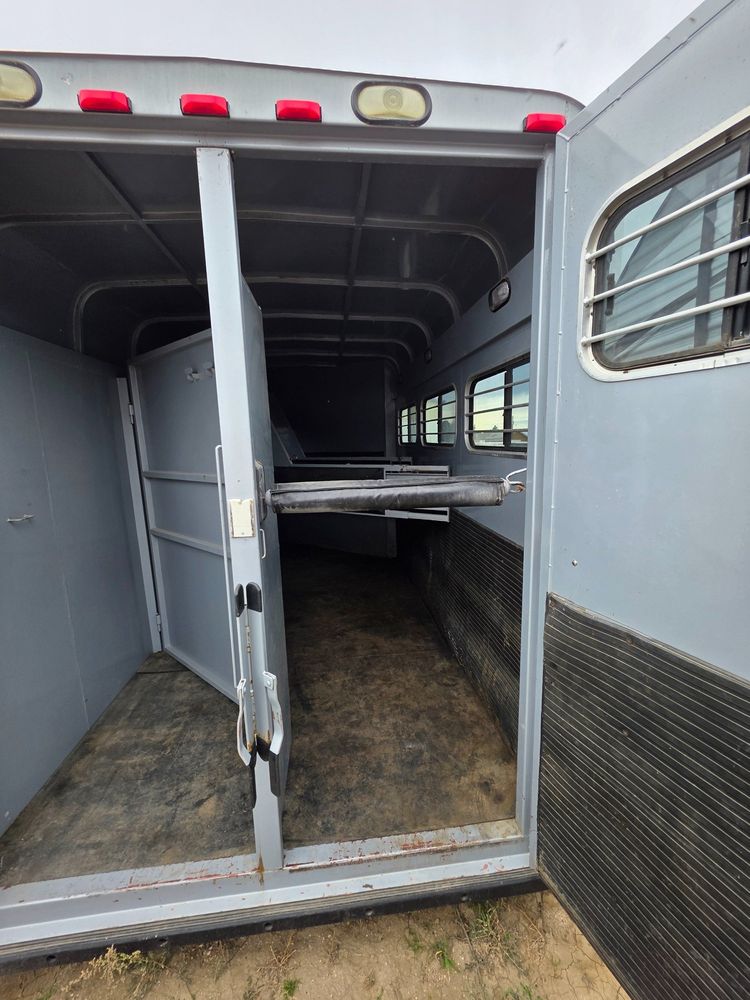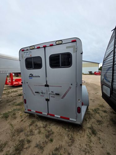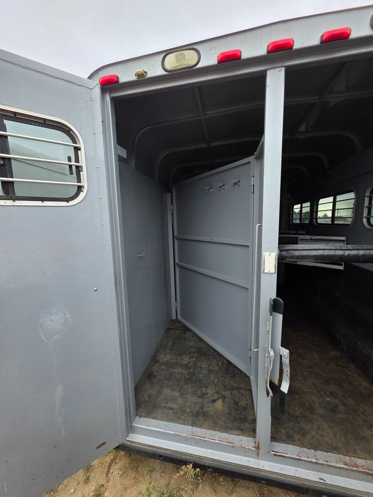 Check out this consignment trailer we got it in. It is clean. It has a lot of really nice features including the drop down windows on the head side, collapsible rear tack, large dressing room and the buss windows on the butt side. It is getting a fresh service that will pack the bearings, adjust and inspect the brakes, and check the floor lights and suspension. It will be ready to hit the road. The tires are in excellent shape, lots of tread and no dry rot. Come check it out.
