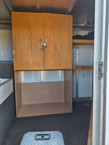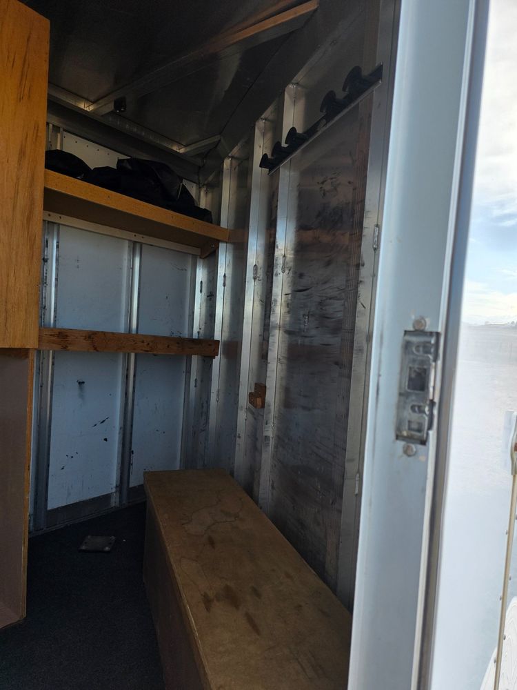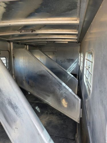 Up front, there’s a large dressing room with removable storage cabinets, providing extra convenience for gear and tack. The trailer also features double rear doors, rubber floor mats, and a full aluminum construction for lightweight durability.