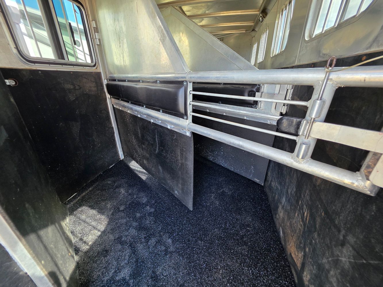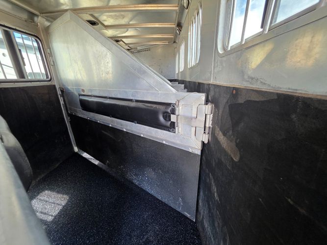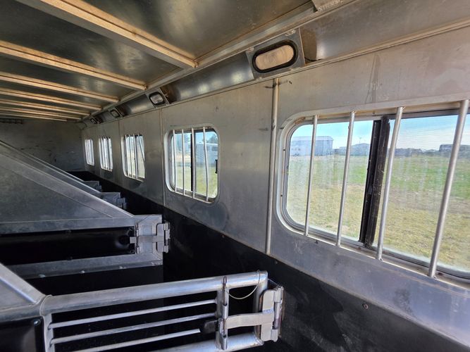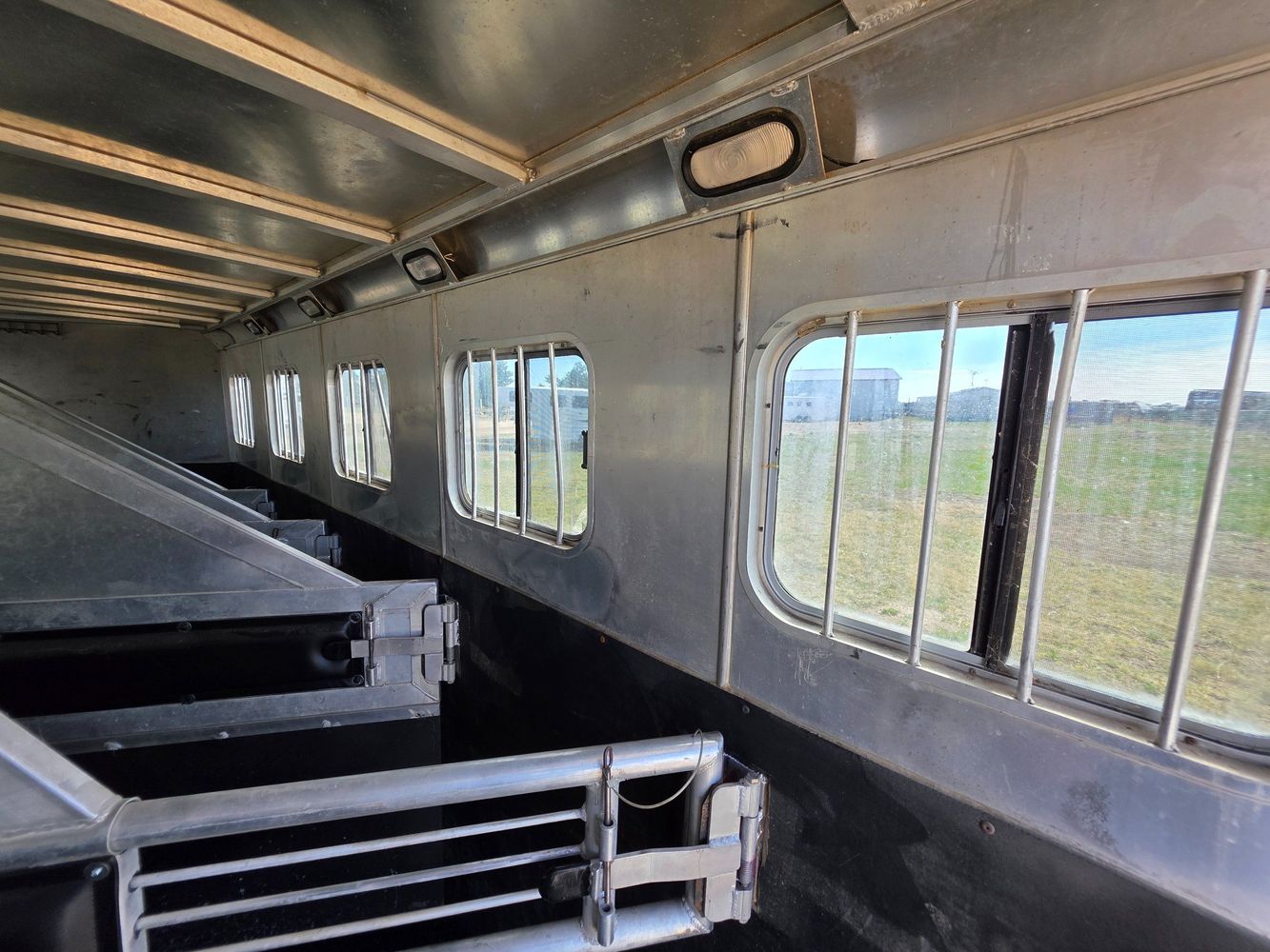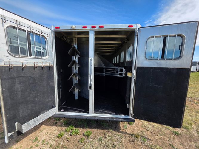 Just in on trade: 2001 Sooner 5 horse with weekender package. This trailer has a lot of potential whether you want to use it as a day show trailer, fix it up into a neat little weekender, or gut the interior and create a huge dressing room/tack room combo.