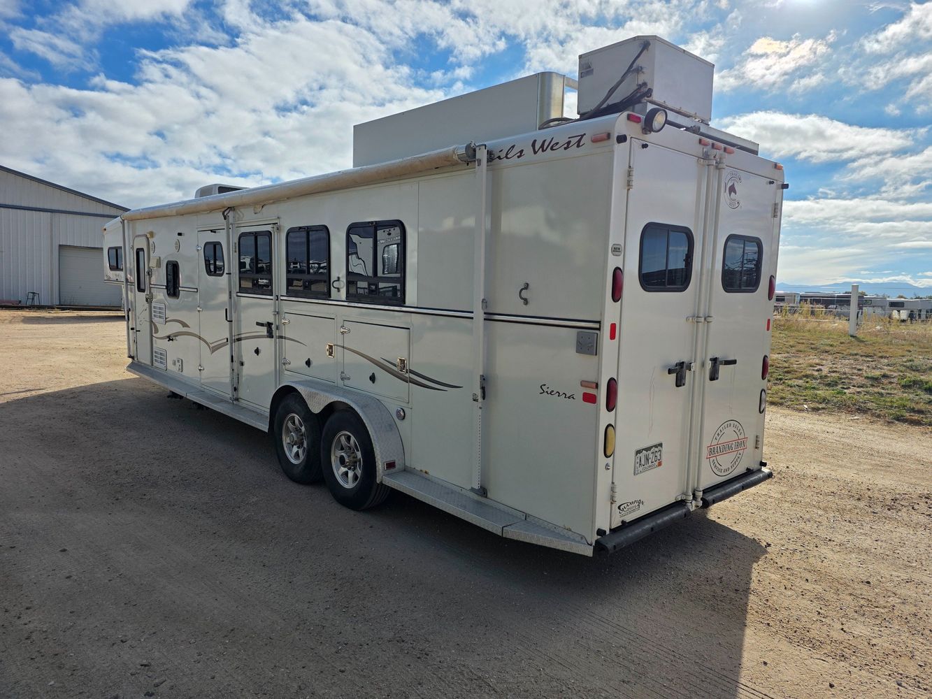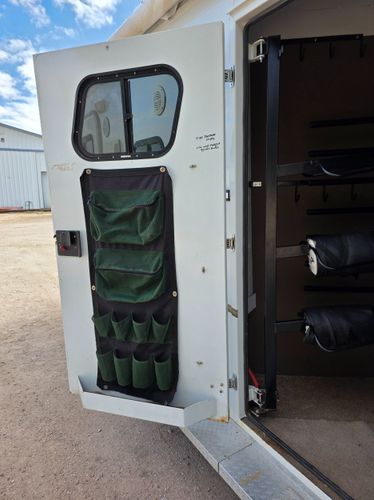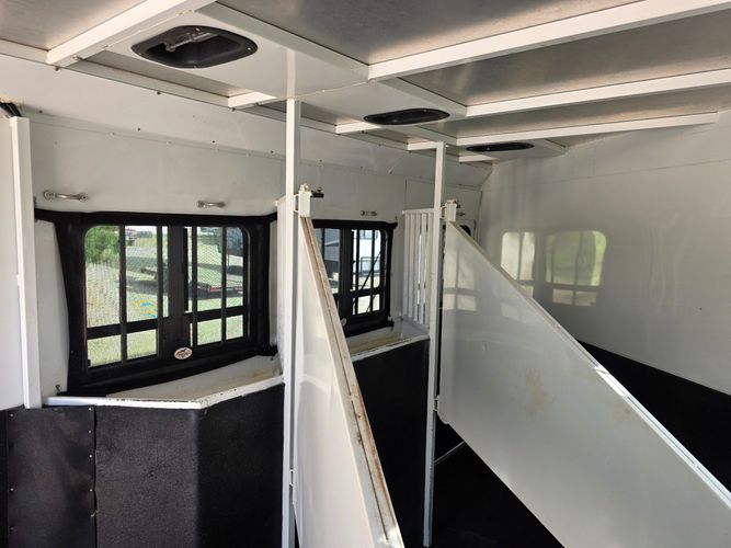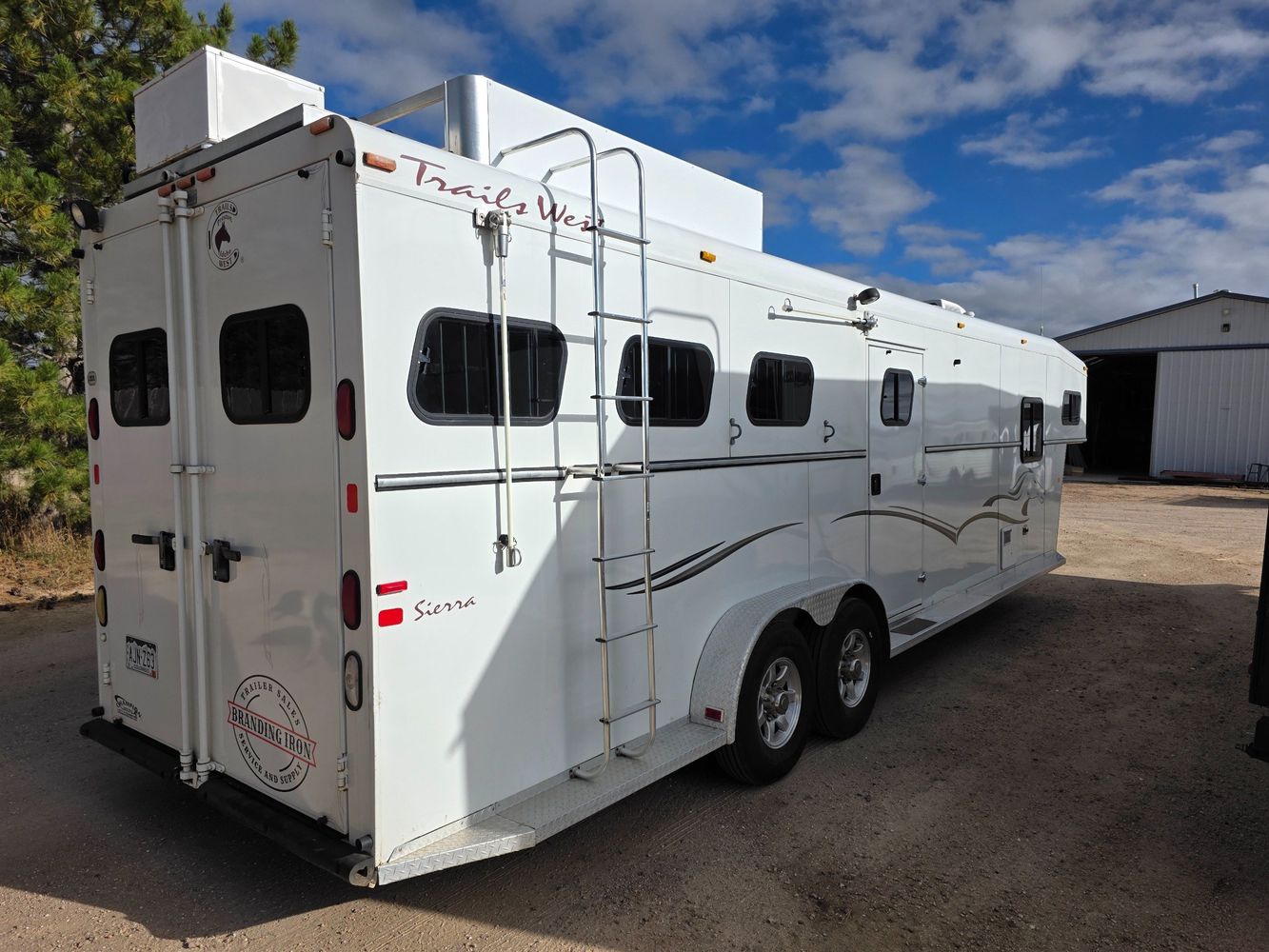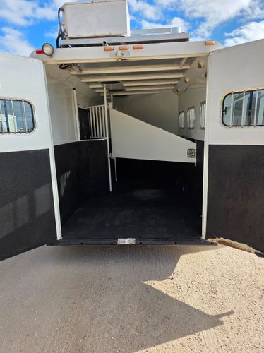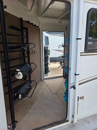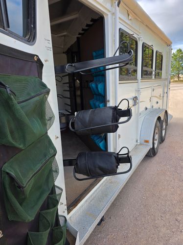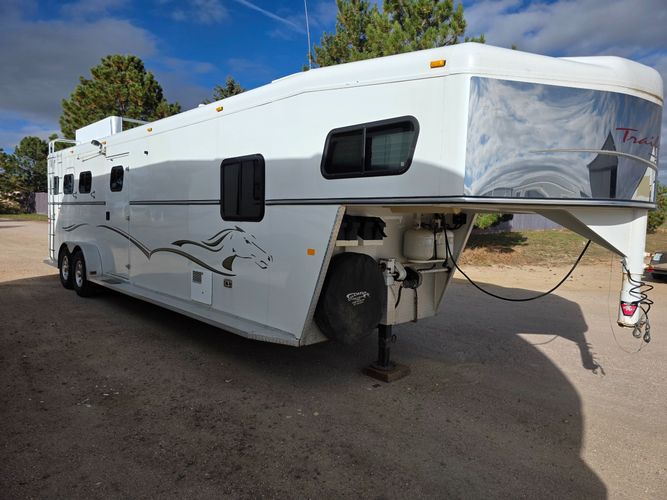 We just got this sweet little Trailswest 3 horse gooseneck living quarters with a full width mid tack in on consignment. This trailer has been really well kept and it shows. It is in excellent shape. To back that it will go through the shop and get serviced and winterized this week. That mid tack has tons of storage dual swing out saddle racks and blanket bars, tack organizers and a water tank it will haul your "stuff" if not you still have mangers under stall 2/3 and a hay rack up top. The interior is a full lq with a fridge, microwave, microwave, heater, ac, couch with a table, combo shower and toilet, and tons of storage from cabinets to drawers. This trailer will be just perfect for your weekend rodeo or camping trip. You do not want to miss out on this one.