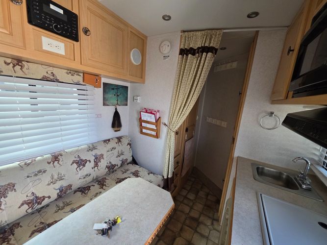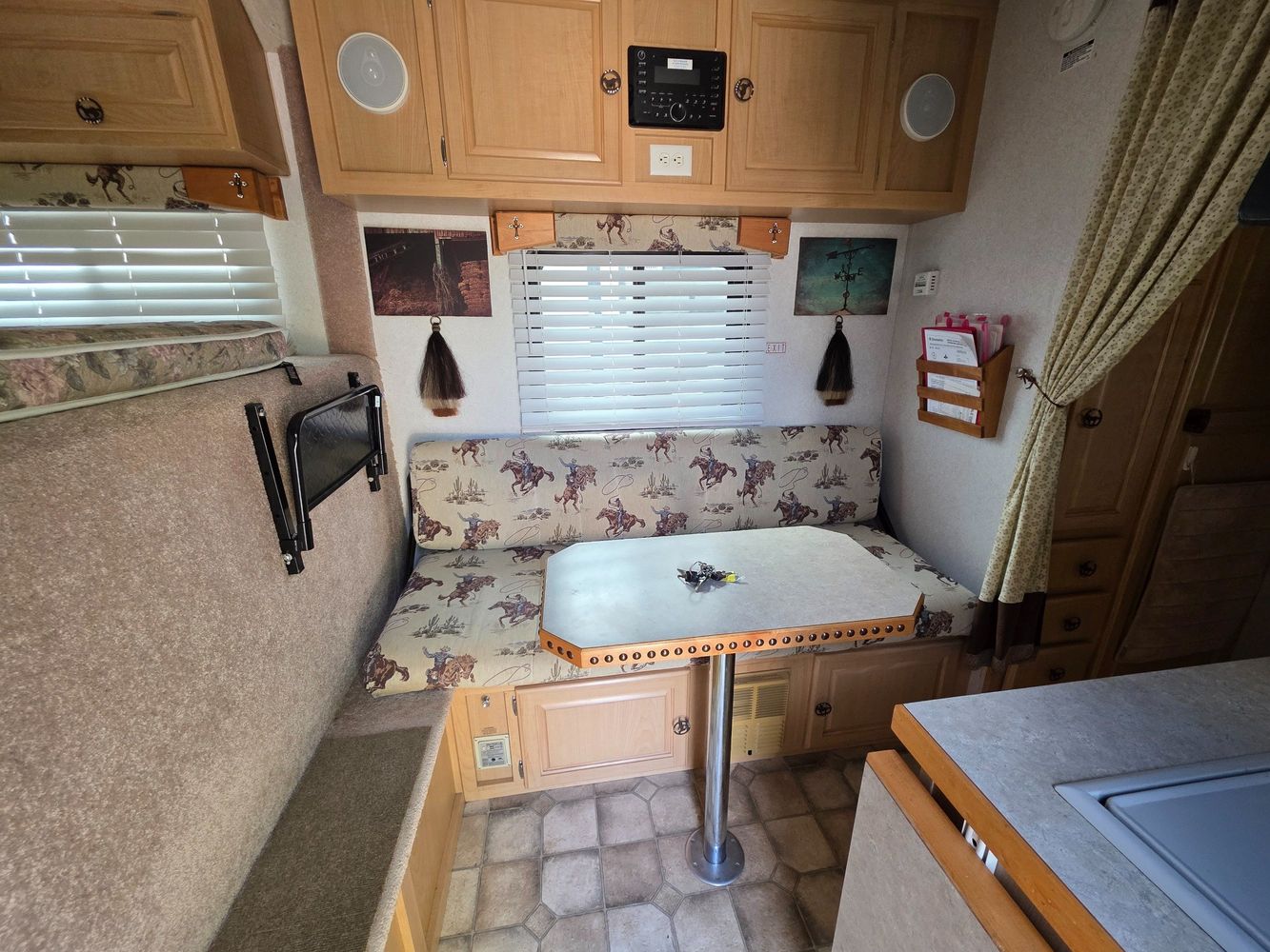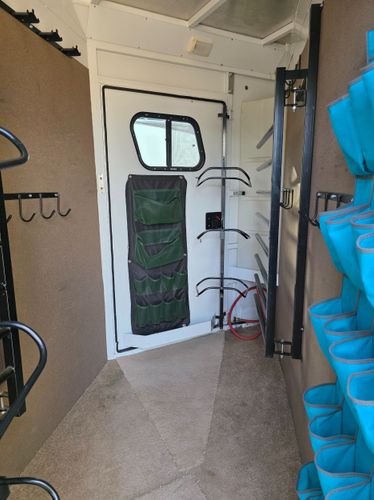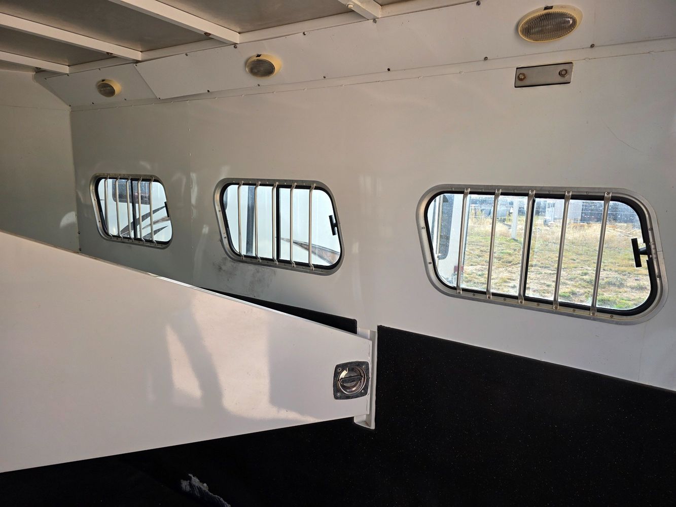 We just got this sweet little Trailswest 3 horse gooseneck living quarters with a full width mid tack in on consignment. This trailer has been really well kept and it shows. It is in excellent shape. To back that it will go through the shop and get serviced and winterized this week. That mid tack has tons of storage dual swing out saddle racks and blanket bars, tack organizers and a water tank it will haul your "stuff" if not you still have mangers under stall 2/3 and a hay rack up top. The interior is a full lq with a fridge, microwave, microwave, heater, ac, couch with a table, combo shower and toilet, and tons of storage from cabinets to drawers. This trailer will be just perfect for your weekend rodeo or camping trip. You do not want to miss out on this one.