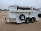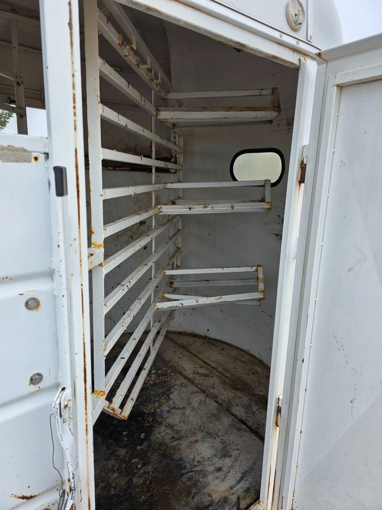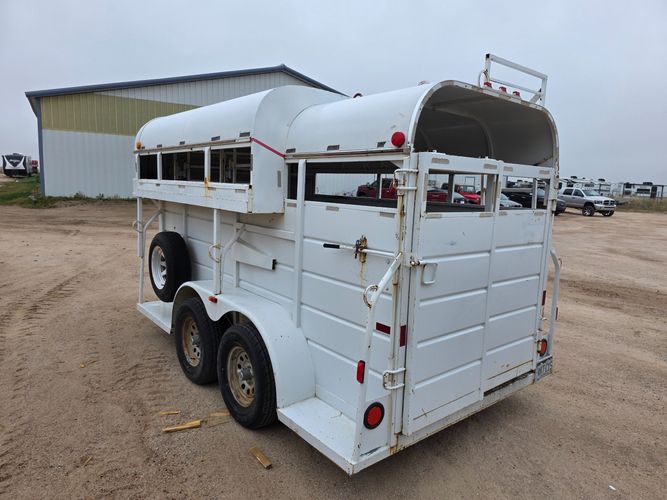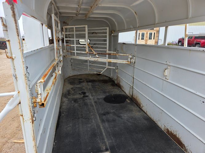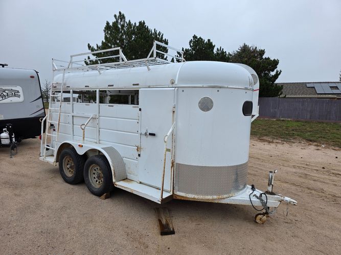 Here is a new trade in we got. A nice little 2007 W-W 14' bumper pull livestock trailer. This was originally a 14' open stock, the original and only owner of the trailer added a feed manger and lifted the roof on the driver side for more head room for horses. He also added a gate with saddle racks for a tack room and 2 dividers to make it a 3 horse slant. The gate saddle racks and dividers can easily be removed and turned back into an open stock trailer again. The raise the roof portion would be a bit more difficult. The trailer overall is in good shape- the tires floor etc. If you are looking for a handy little bumper pull cheap check this one out.