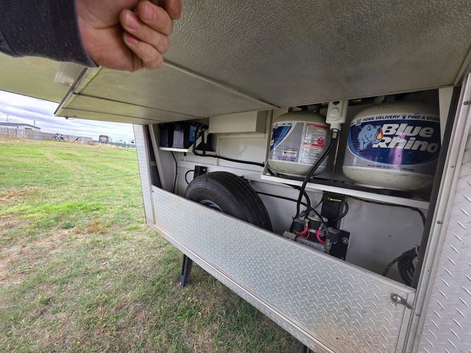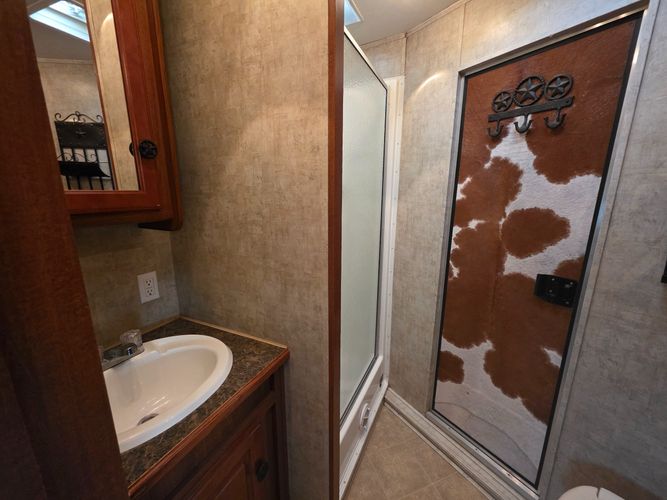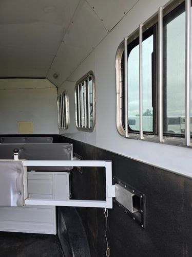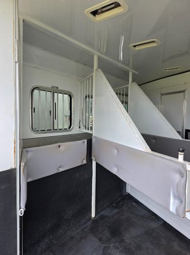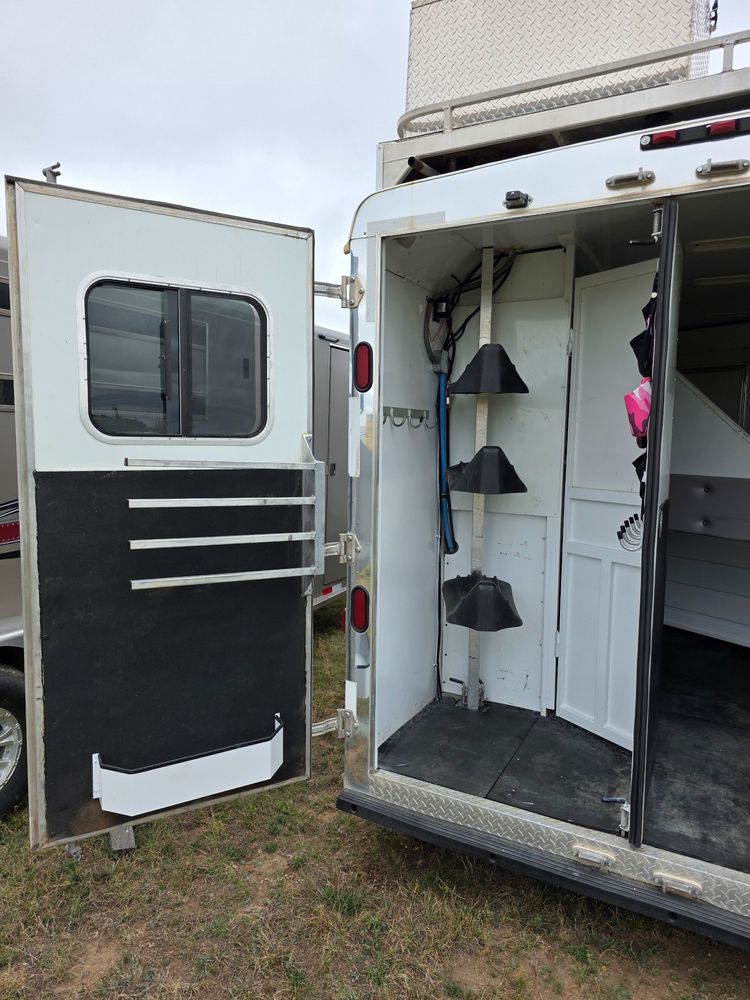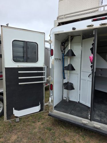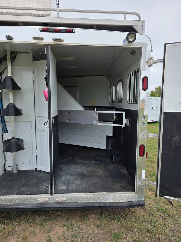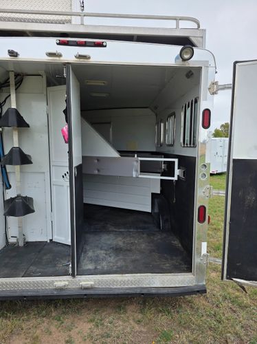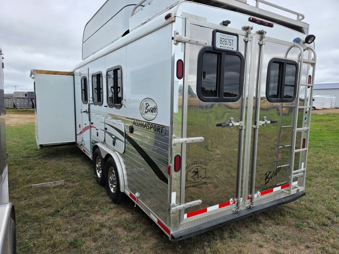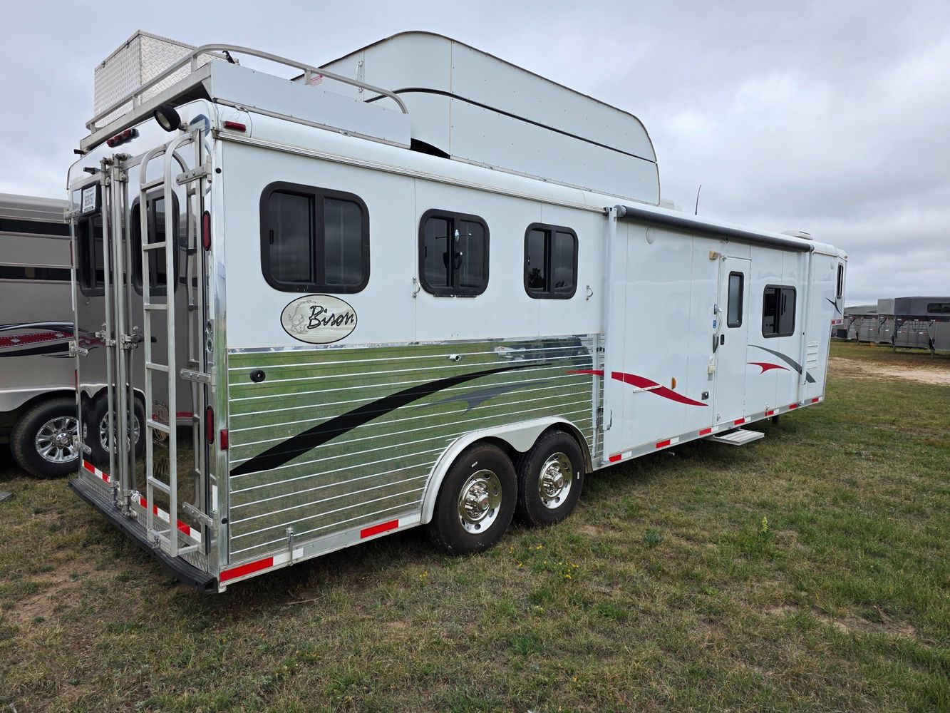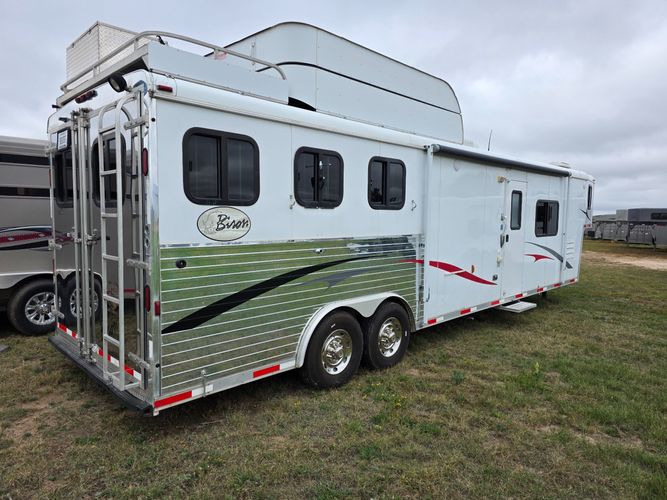We have a really nice 2008 Bison Alumasport in on consignment. This trailer would fit a large family nicely with the bedroom in the nose, fold down couch and dinette that folds into a bed. The horse compartment easily fits 3 or collapse the tack and throw the quads in for hunting. It has an enclosed haypod and generator.