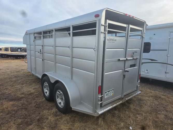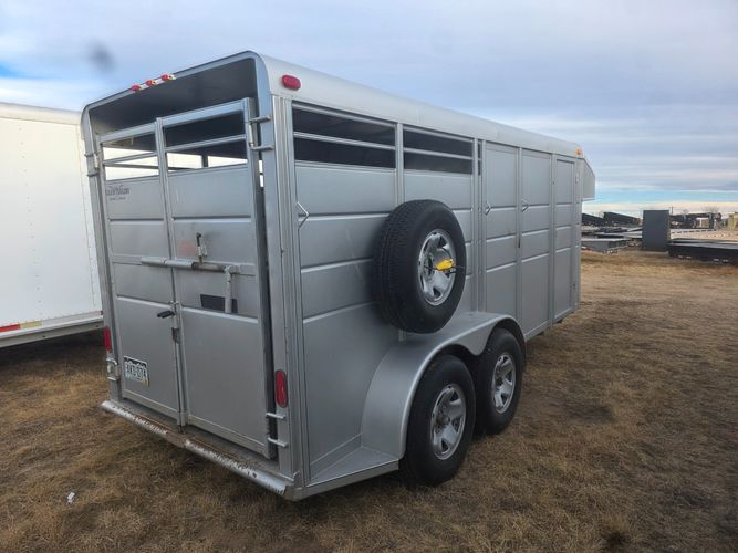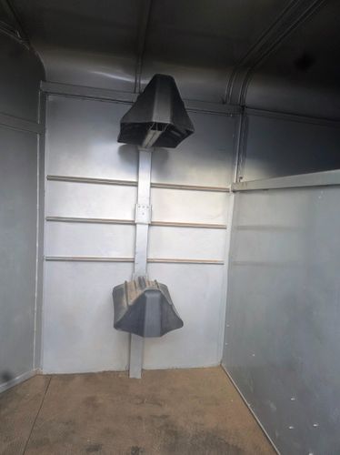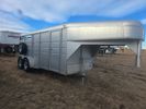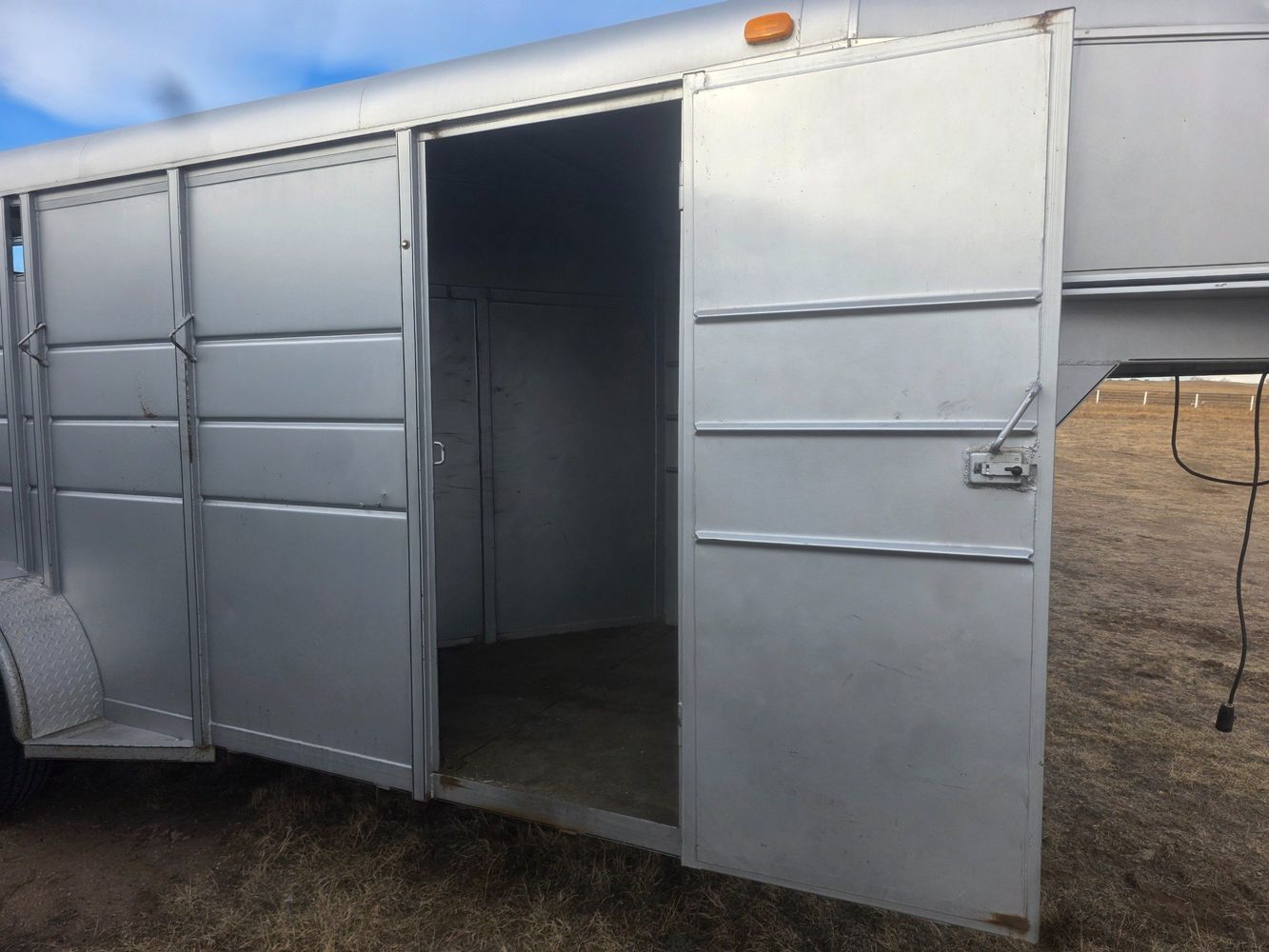 In on consignment, we have a really nice 2 horse gooseneck. It has a large dressing room with a saddle rack against the back wall with 3 spots and a secondary one by the door. The one by the door is not currently installed. The floor length is 16 ft and its 6' wide 6'6" tall. The trailer only weighs 3600 pounds, easily towable with a 1500.