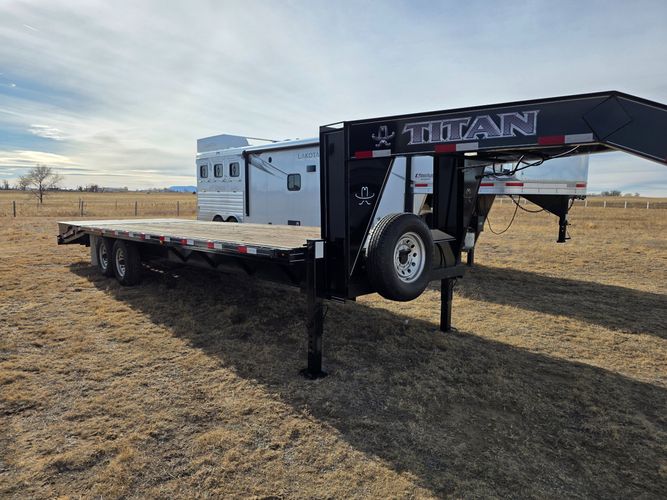 This 2025 Titan Ruffneck 20+6 comes equipped with the 6’ WideGlide tail for easier loading and a smoother transition for equipment. Finished in the new Desert Tan color, it’s built tough with Titan’s heavy frame design and quality components.