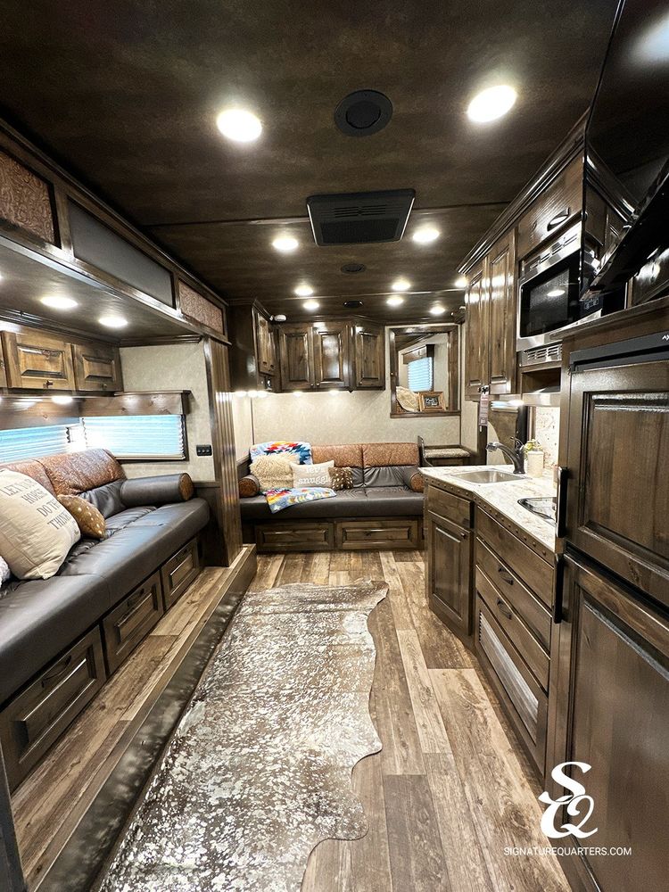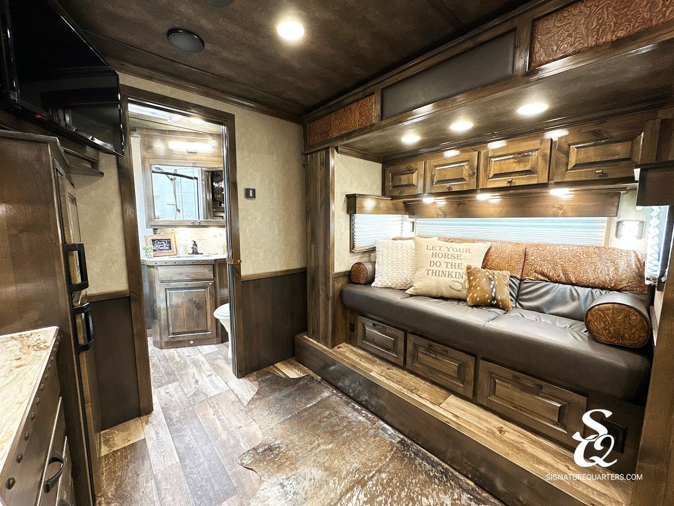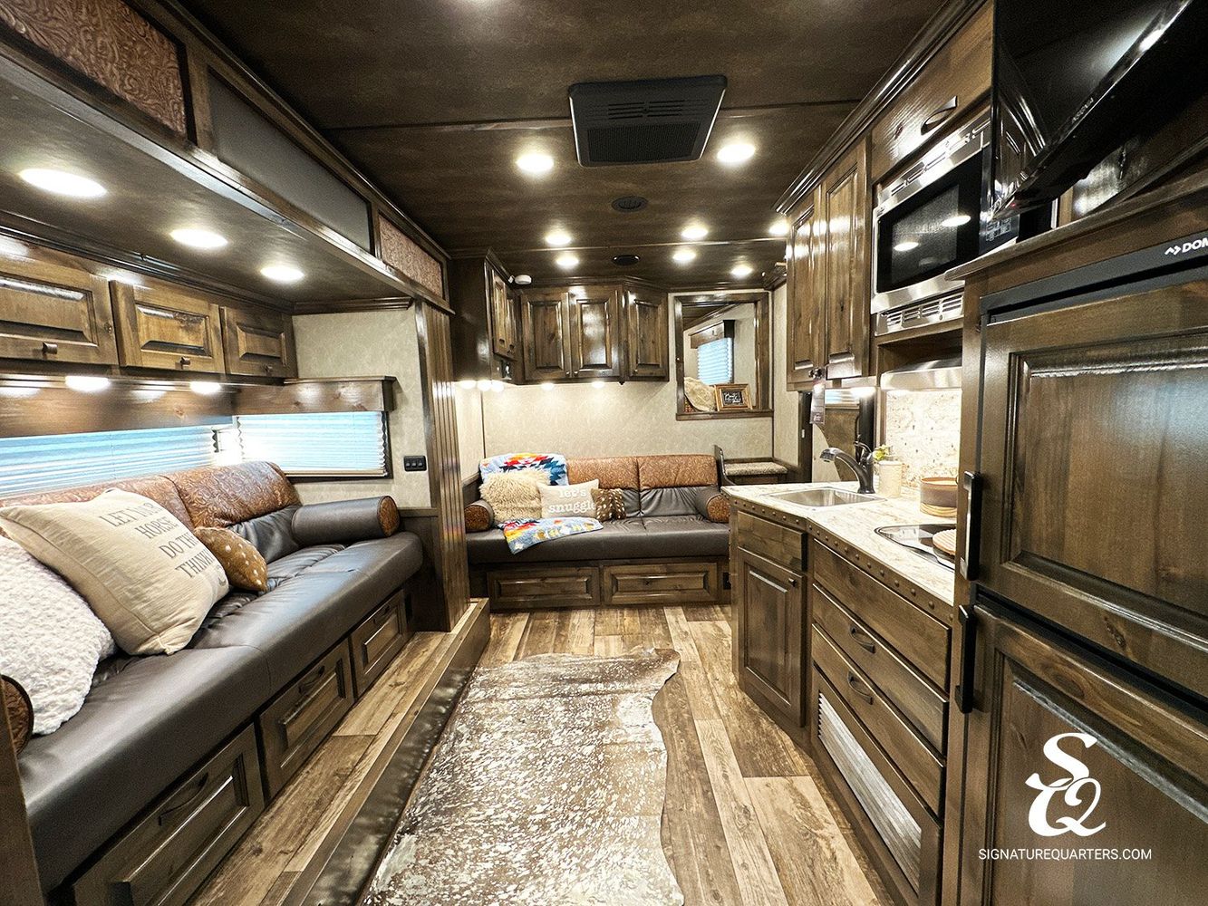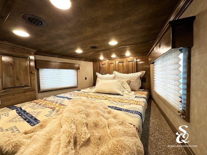 This trailer performs equally well in extreme conditions — from 110°F at the NLBRA Finals in Oklahoma to 34°F in Estes Park, CO. Hart’s build quality paired with Signature Quarters’ interiors makes this a premium choice for riders who value both luxury and reliability.