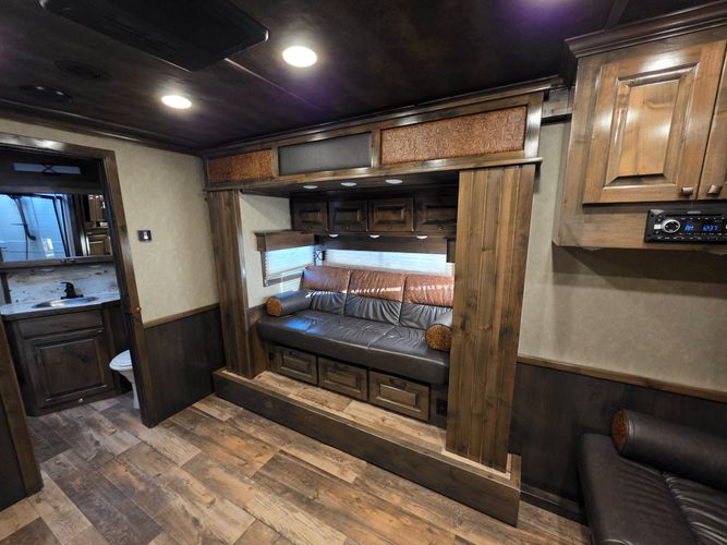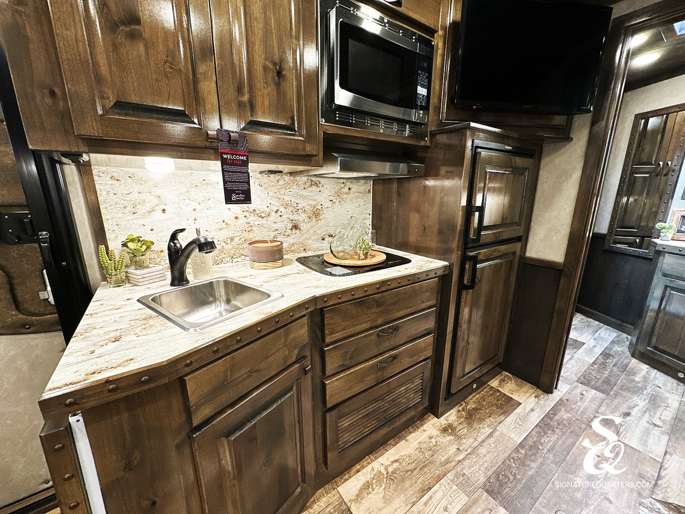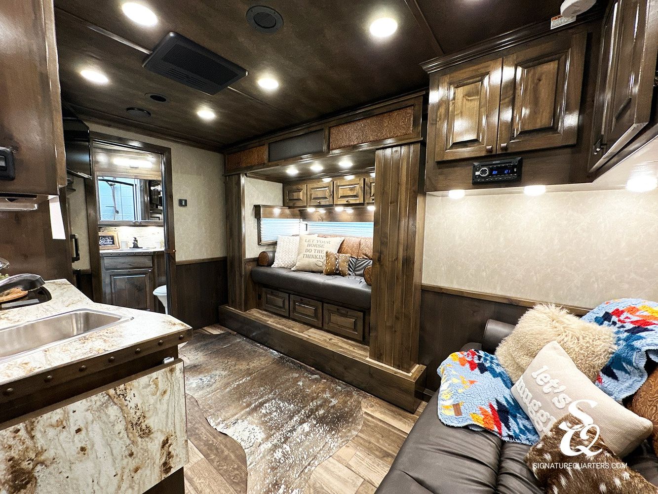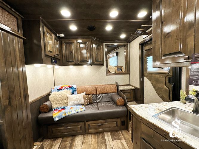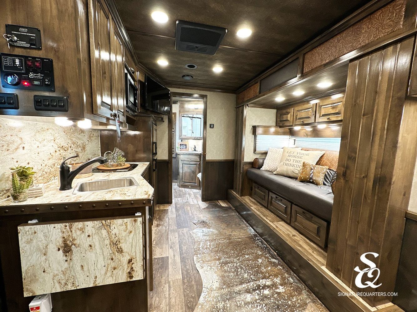 This trailer performs equally well in extreme conditions — from 110°F at the NLBRA Finals in Oklahoma to 34°F in Estes Park, CO. Hart’s build quality paired with Signature Quarters’ interiors makes this a premium choice for riders who value both luxury and reliability.