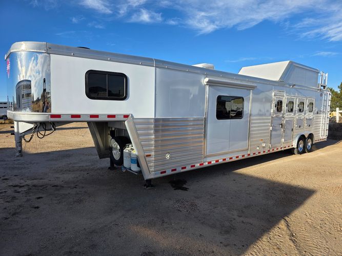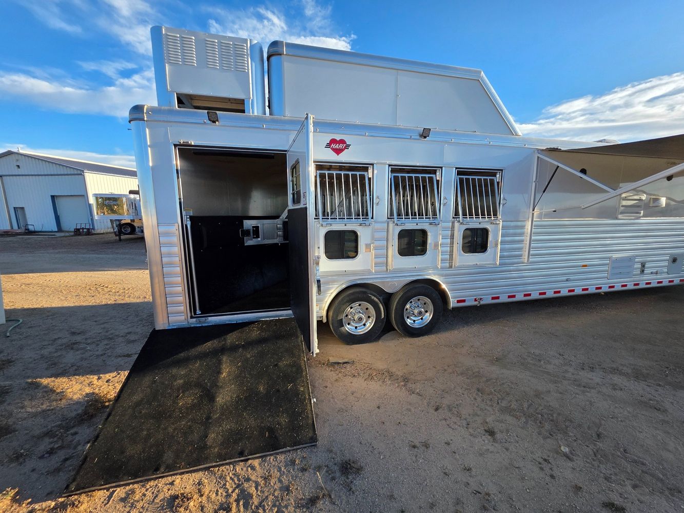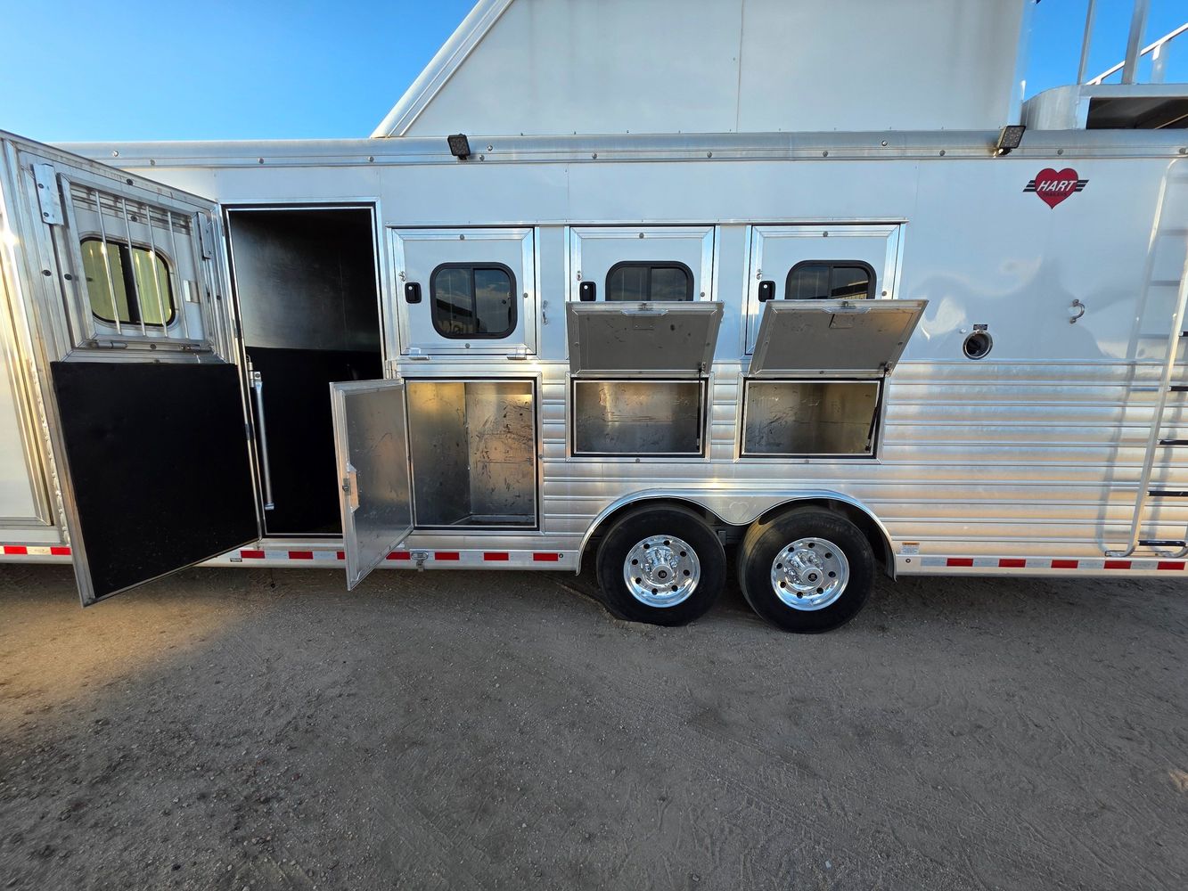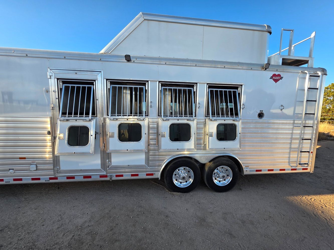 This 2024 Hart Tradition 4-horse slant load trailer features a 15-foot short wall living quarters professionally designed by Signature Quarters. Built for both comfort and durability, it combines premium craftsmanship with practical functionality for riders who demand the best.
