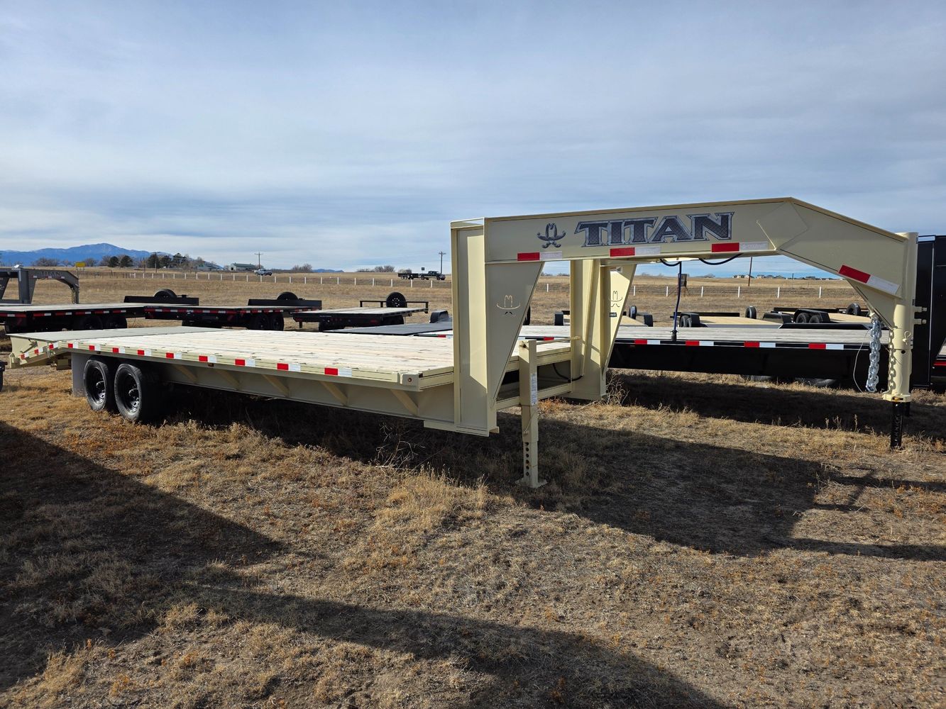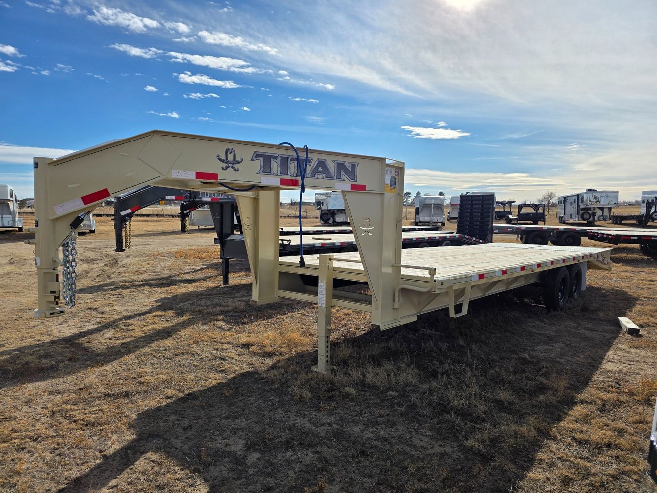 This 2025 Titan Ruffneck 20+6 comes equipped with the 6’ WideGlide tail for easier loading and a smoother transition for equipment. Finished in the new Desert Tan color, it’s built tough with Titan’s heavy frame design and quality components.