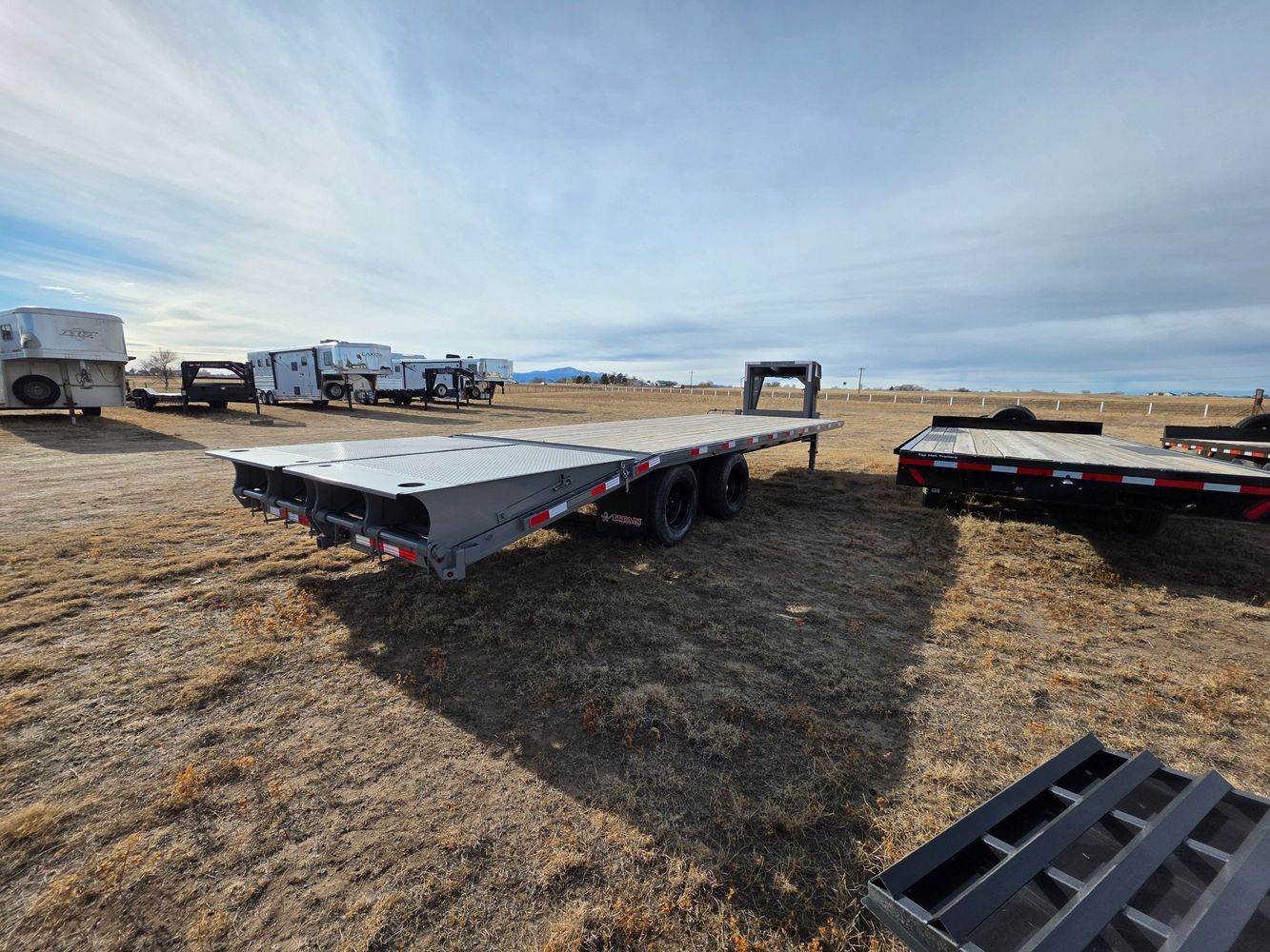 Bonus: you can fold them flat and use the full trailer length for hauling hay or building supplies without losing deck space.